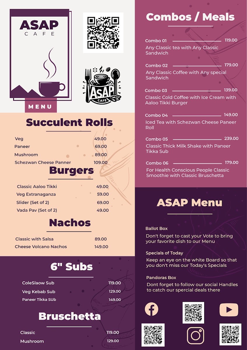 The café also serves delicious Maggi, with options like Double Masala and Schezwan, making it a go-to spot for quick bites. What sets ASAP CAFE apart is not just the food, but the ambiance—accentuated by tasteful artwork and a gaming zone with PS5, Ludo, and carroms, adding to the fun experience. With rave reviews confirming its charm and quality, ASAP CAFE is truly a must-visit for anyone craving good food and great company.